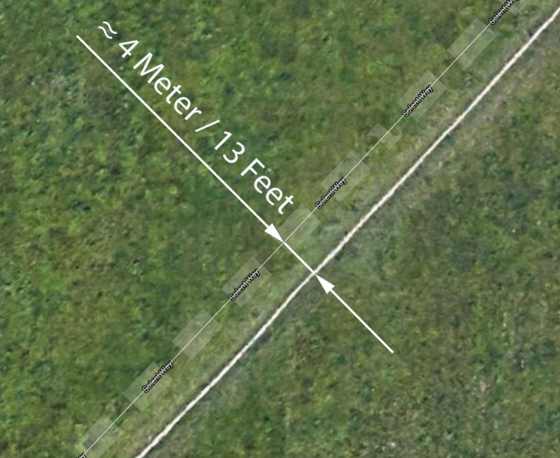 Beispiele für die Abweichung zwischen Satellitenbild und Karte. Die Markierungen auf TitanicMap wurden anhand des Satellitenbildes gesetzt. Auch beim Austausch von Satellitenbildern durch Google kann es zu Abweichungen kommen, was inbesondere auf Friedhöfen Verwirrung stiften kann, da sich die Gräber scheinbar „verschoben“ haben.